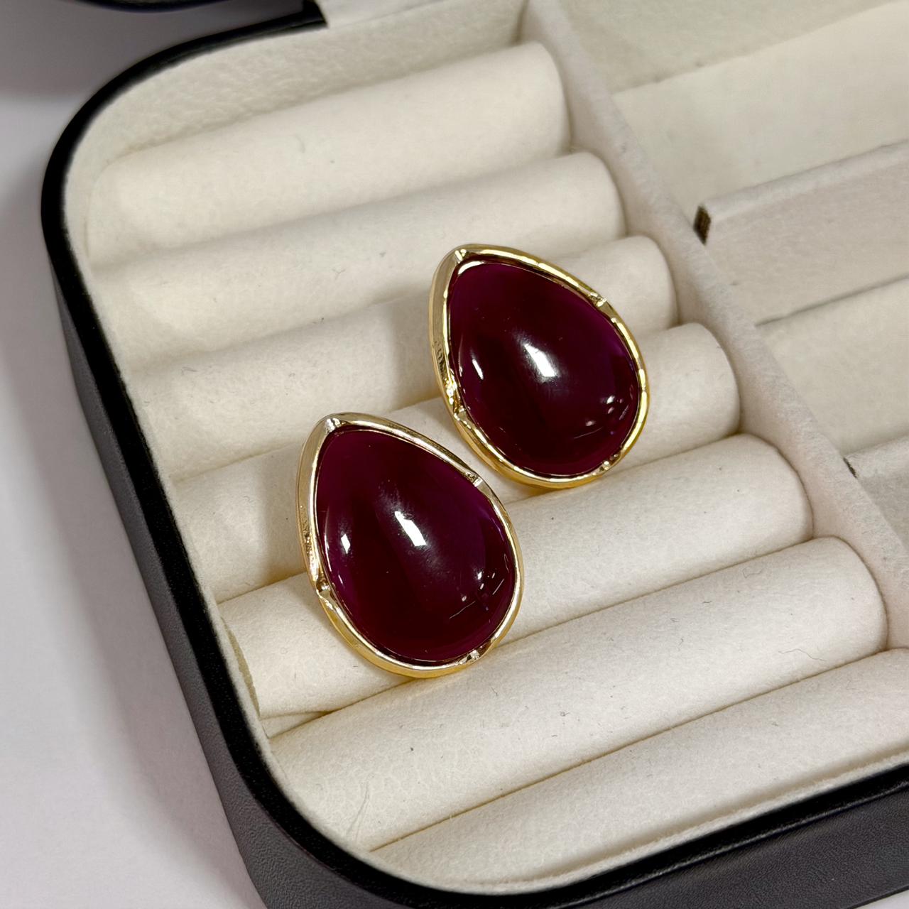Brinco Gota Resinado Bordô - Banho de Ouro
