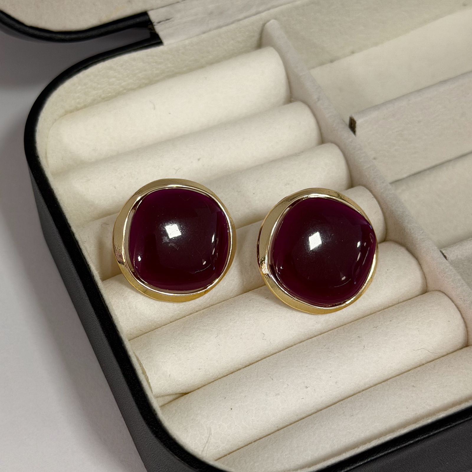 Clássico com personalidade. O brinco redondo com resina bordô é uma peça elegante que combina simplicidade e sofisticação na medida certa.